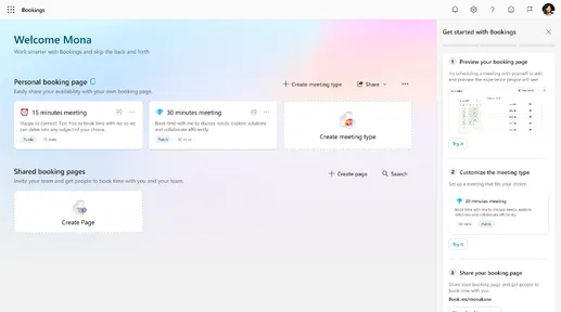 Cette mise à jour ne modifie pas les fonctionnalités existantes de Bookings : vous retrouvez toutes vos habitudes et conservez l’ensemble de vos paramétrages et rendez-vous existants.