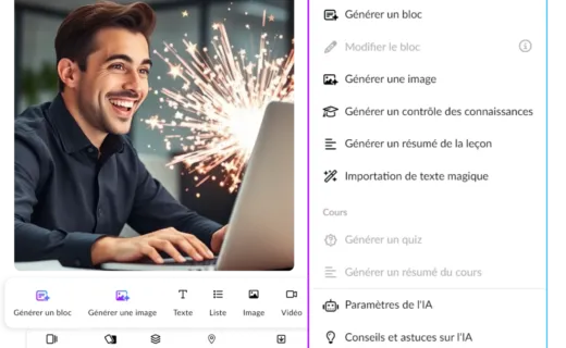 En pratique, chaque outil a sa place : Moodle (cours, activités, évaluations), Wooclap (interactivité en direct), Scholarvox (accès à des ouvrages en ligne), Compilatio (détection de plagiat), HeyGen ( génération de capsules vidéo par l’IA), Articulate/H5P (production de ressources interactives)